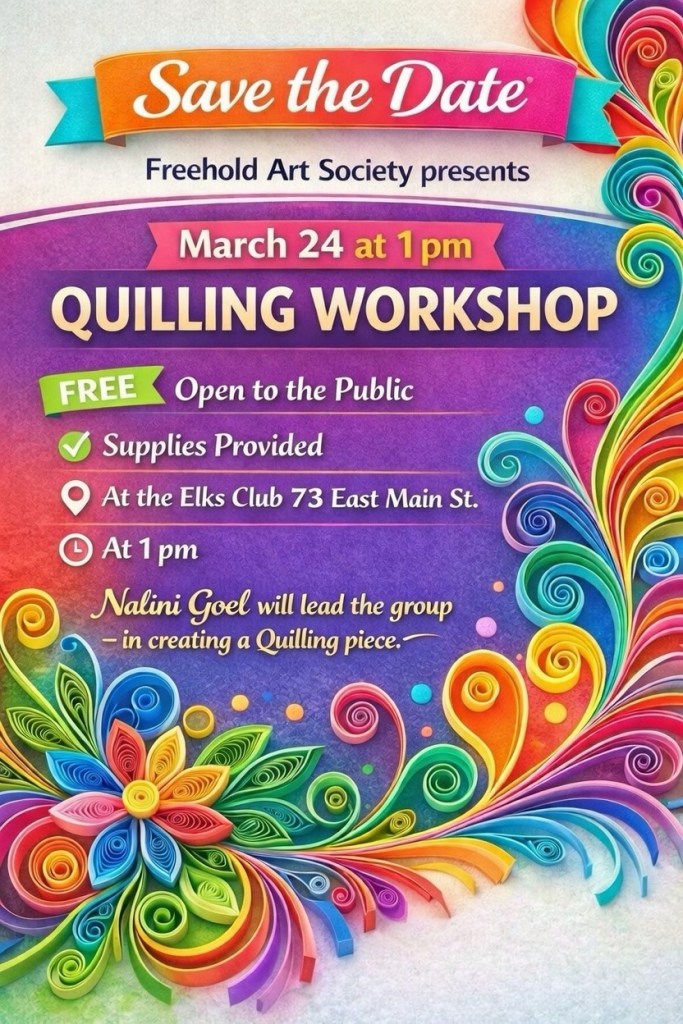 Freehold Art Gallery will host a Members Only Art Show for us in January 2026 at 73A West Main Street, 2nd fl, Freehold