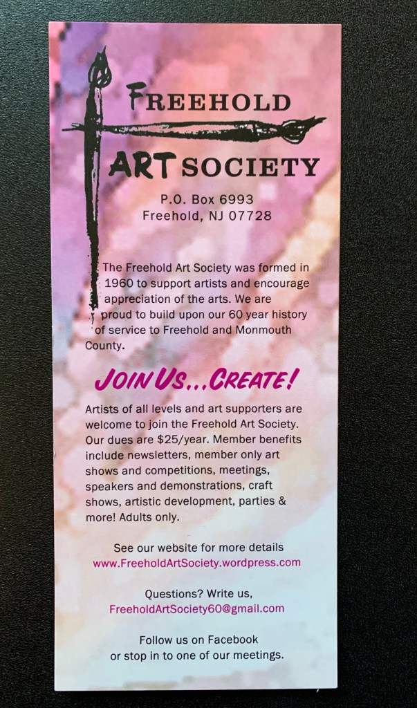 The FAS exhibit at the Freehold Public Library will end next week. Pick up (and drop off) is Monday May 10, 7-8:30 pm and Tuesday, May 11, 9:30-11 am. Please download the prospectus/entry form for details on our next show: